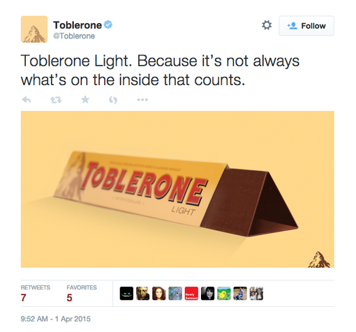 Lol! I would buy this one for all my friends who are on diet! just to see their faces (the evil inside me π ) what I really like is the message attached to it “Because it’s not always what’s on the inside that counts”, yep but the interior of my Toblerone is sacred! π